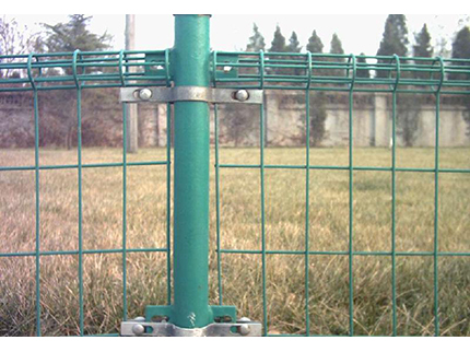 雙圈護欄網是用冷拔低碳鋼絲焊接成網筒狀卷邊與網面一體,采用鍍鋅進行防腐處理,具有很強的耐腐蝕性,然后進行噴、浸塑,各種顏色的噴、浸塑;最后連接附件與鋼管支柱固定。