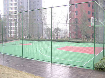 籃球場圍網(wǎng)表面處理:圍網(wǎng)采用PE/PVC包塑絲,立柱、邊框采用噴塑、浸塑處理
